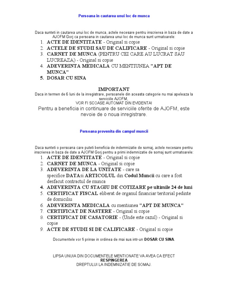 Măsura se găsește în ordinul anofm nr. Certificat de nastere copie xerox si in original. 174 2002 cu modificarile si completarile ulterioare anexa nr. Actele necesare pentru intocmirea dosarului de indemnizatie de somaj.