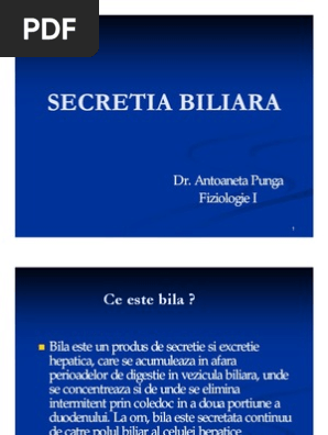 Este o substanta amaruie de culoare maronie care este secretata de ficat si care are un rol important in digestia lipidelor. Bila hepatică este galben aurie şi limpede. Bila este alcătuită din. învață să recunoști simptomele și fugi la medic.