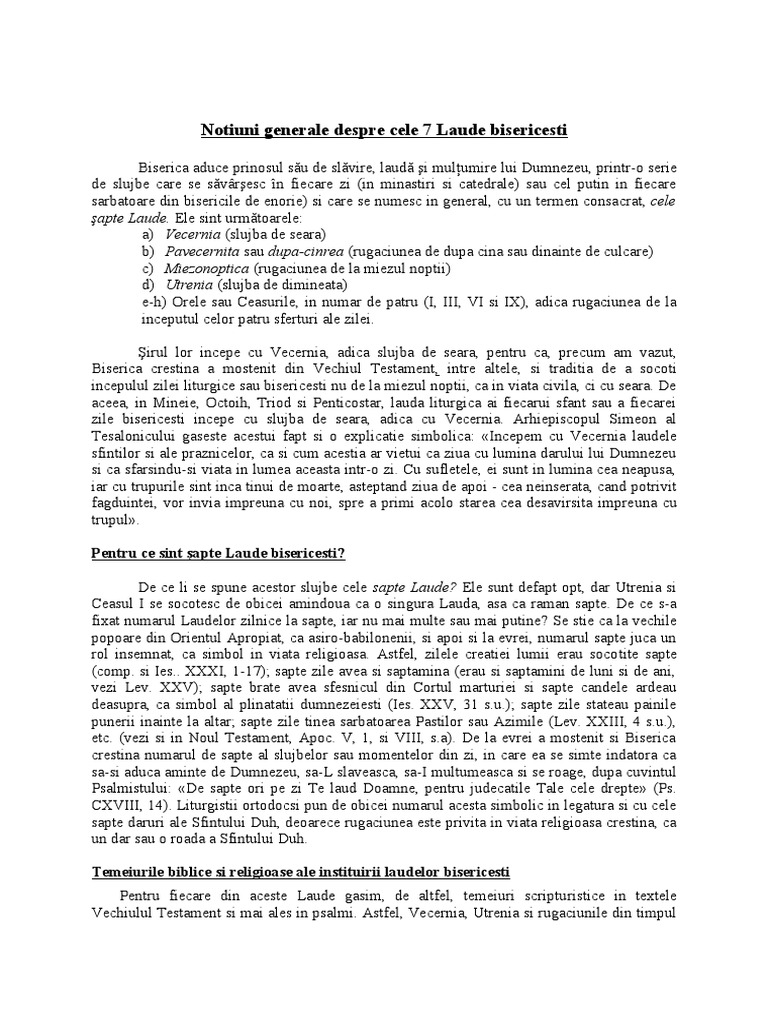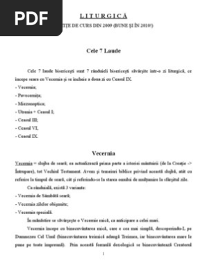 Cele 7 laude. Utrenia şi ceasul i se socotesc de fapt ca fiind o singură laudă astfel ajungîndu se la numărul de 7 laude. Utrenia şi ceasul i se socotesc de fapt ca fiind o singură laudă astfel ajungîndu se la numărul de 7 laude. P e cei ce cu judecăţile tale cele negrăite i au omorât băuturile cele cu farmece otrăvite înecările de oase cu sfinţii doamne odinneşte i. Vecernia pavecerniţa miezonoptica utrenia ceasul i iii vi ix.