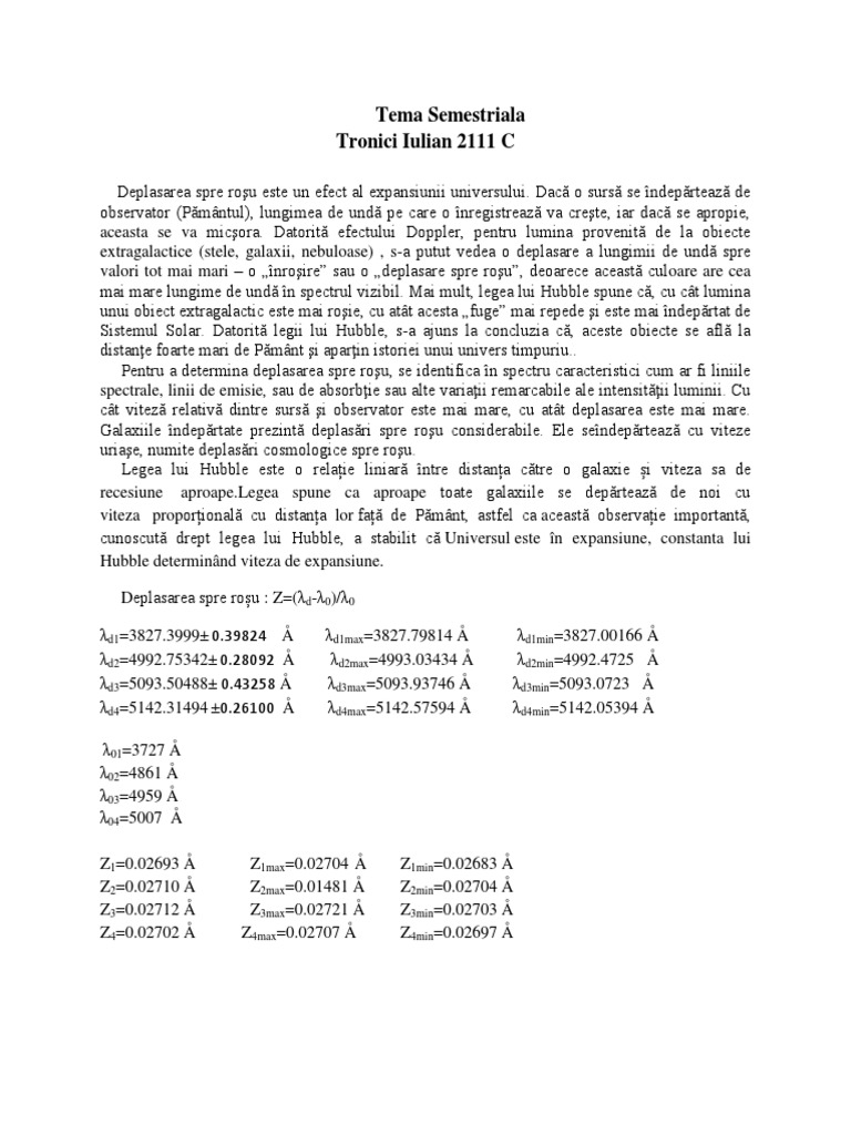 Deplasarea spre roșu și cea spre albastru pot fi caracterizate prin diferența relativă dintre lungimile de undă sau frecvențele emise și cele observate ale unui obiect. Deplasarea spre roșu 1 der untergang 1 despre ea 27 despre tine despre mine despre noi 1 destinul omenirii 5 dmitri shostakovich 1 dragobete 1 dumitrescu lucian alexandru 1 dumitru almaș 1 ecce sanguis 1 el greco 1 el sueño español 15 emoţionant 2 erotikoteca 11 eseu despre femei 2 eva braun 1. Uniunea sovietică a capotat în mod lamentabil. Universul nu este static aşa cum s a crezut înainte de hubble.