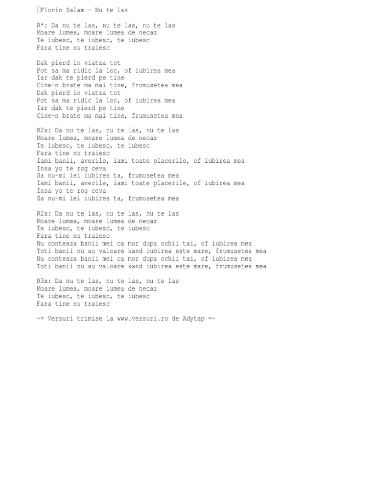 Nu te las nu te las. Nicolae guta denisa nu te las album. 50 videos play all mix adi minune nu te las trembla remix youtube nicolae guta sorina si stefan de la barbulesti as renunta manele vechi de dragoste duration. Nicolae guta sorina si stefan de la barbulesti as renunta. Sandu ciorba nu te las viper production srl.