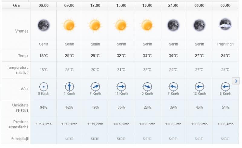 Pe ore in ziua curenta in urmatoarele zile in urmatoarea saptamana.