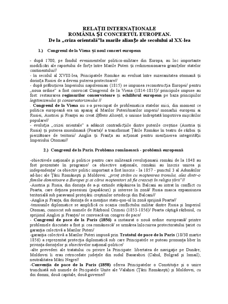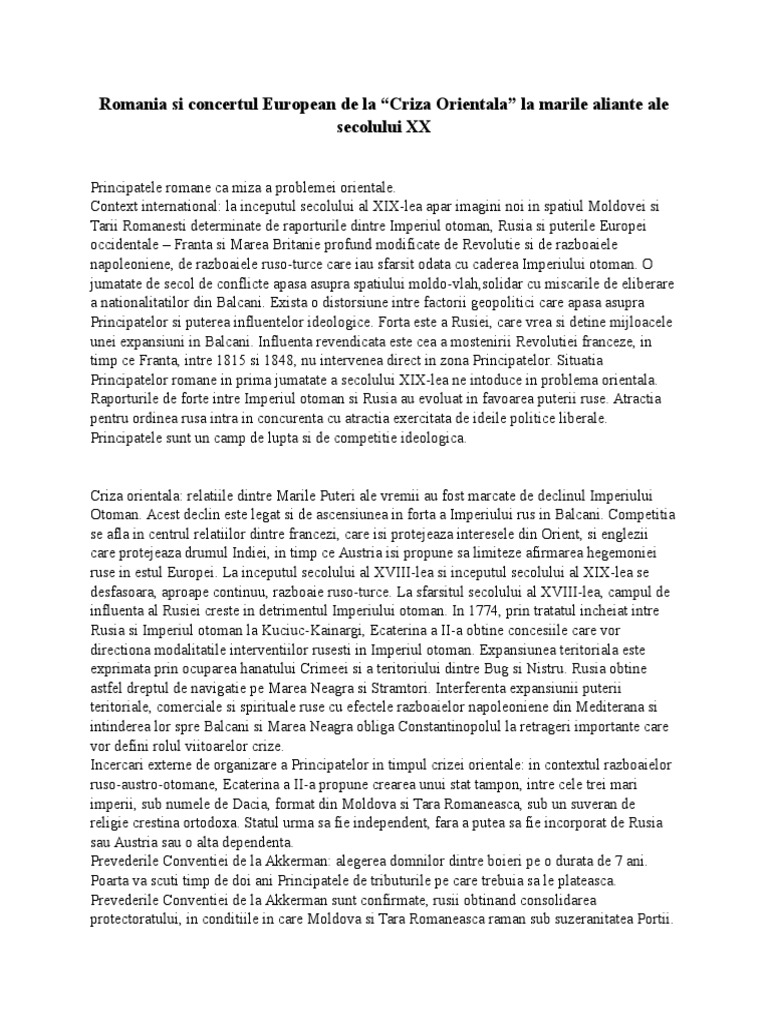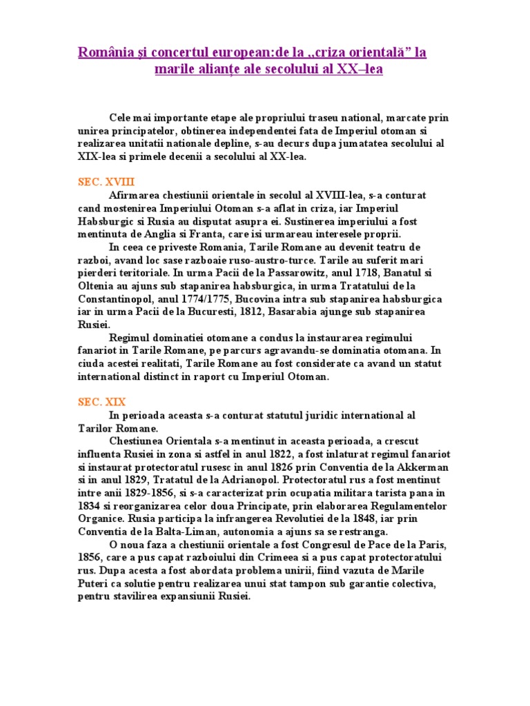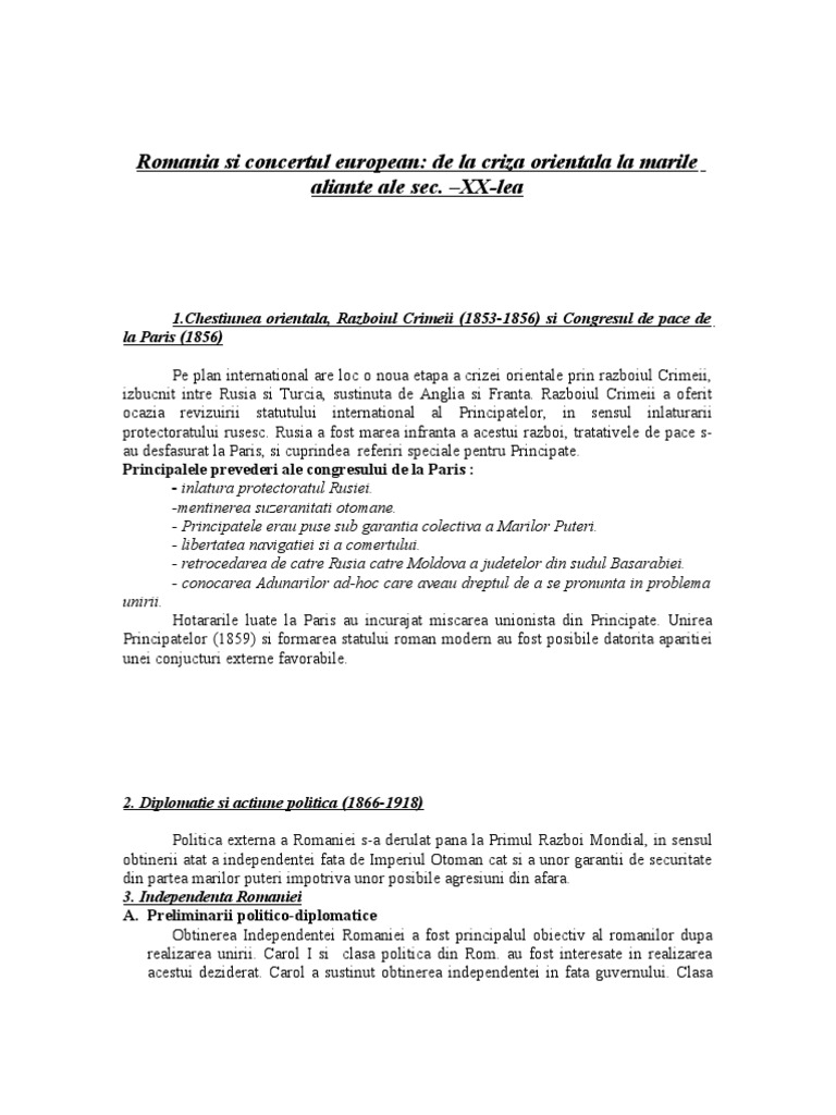 Vei putea citi de la cele mai importante alianțe și acțiuni diplomatice congresele de pace la cele mai importante acțiuni militare războaiele balcanice războaiele mondiale doar în capitolul nostru românia și concertul european. Ro si concertul european doc. Principatele romane ca miza a problemei orientale. De la criza orientală la marile alianţe ale secolului xx.