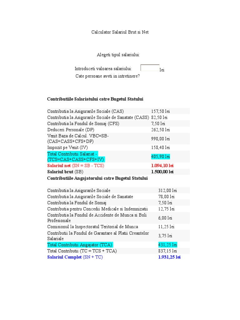 Salariul net reprezinta diferenta intre salariul brut si cheltuielile deductibile contributii obligatorii si cheltuieli profesionale acordate numai la locul unde se afla functia de baza a salariatului. Calculator salariu net pornind de la salariu brut sau complet. Calcul salariu simulator salariu pornind de la salariul brut brut la net salariul net net la brut sau totalul cheltuielilor suportate de angajator salariu complet impreuna cu evidentierea detaliata a tuturor sumelor.