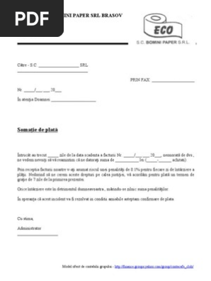 Somatie de plata. Somatie europeana de plata. Orice intarziere este in detrimentul dumneavoastra marindu se zilnic suma penalitatilor. în acest sens alături de procedura cererilor de valoare redusă art. Comunicarea somatiei somatie de plata model 2017 art.