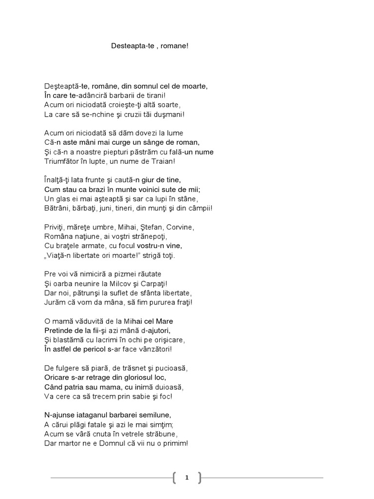 It is thought to have been composed in 1916 shortly before romania s entry into world war i although its first historical apparition occurred in february 1919 when members of the romanian legion of transylvanian bukovinan volunteers were recorded singing a version of the song. Ardealul banatul crisana ne cheama nadejdea e numai la noi saruta ti copile parintii si fratii si apoi sa mergem la razboi. Treceti batalioane romane crapatii la arme cu frunze si flori v asteapta izbanda v asteapta si fratii cu inima la trecatori v asteapta izbanda v asteapta si fratii cu inima in trei culori.